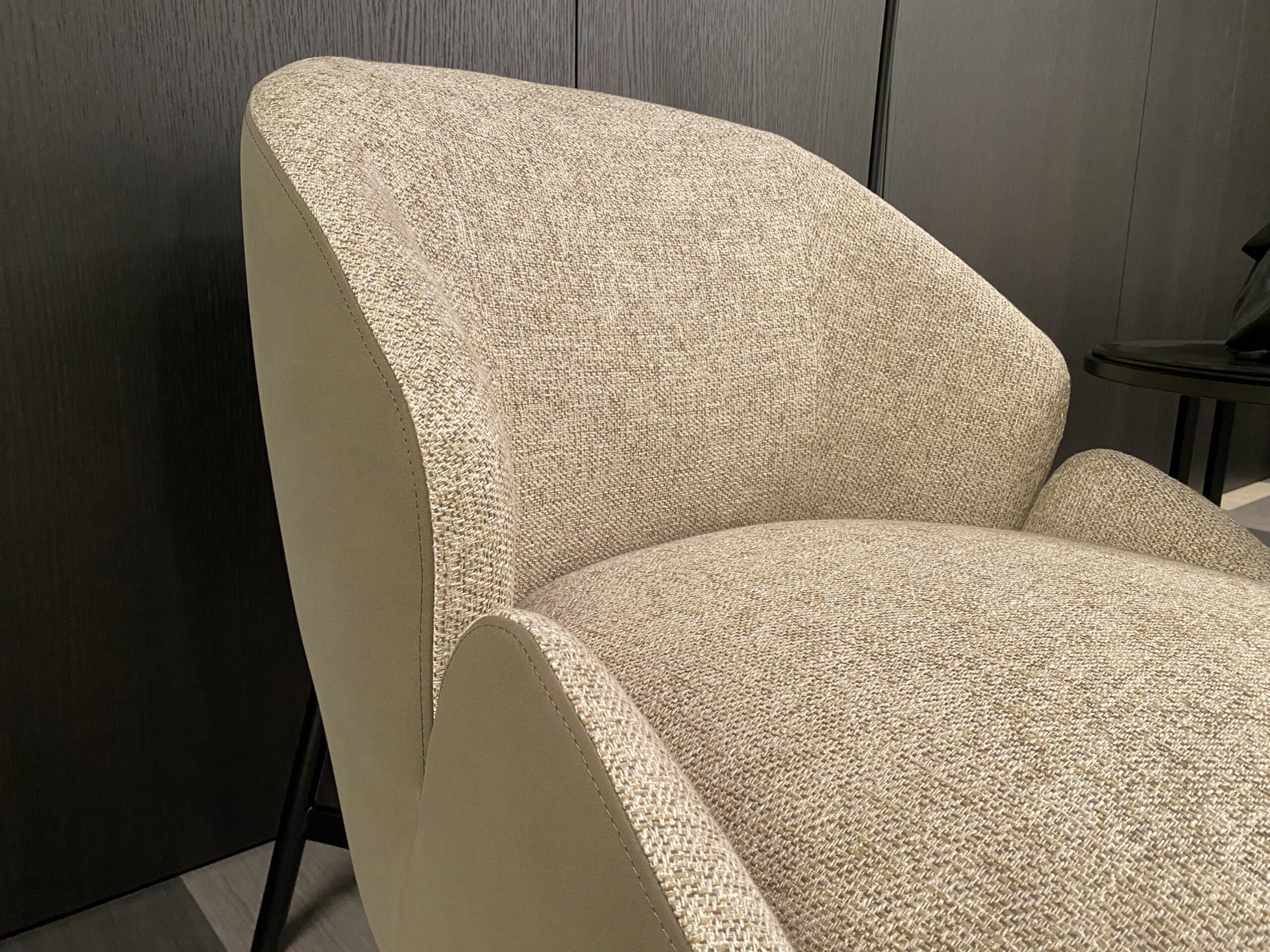 Designové italské křeslo RICA od Twils zaujme nejen svou organickou formou, ale také promyšleným kombinovaným čalouněním, které je použito jako výrazný a velmi elegantní designový prvek. Vnější část křesla je čalouněna kvalitní italskou kůží, která podtrhuje jeho reprezentativní charakter, dodává modelu strukturu a vizuální noblesu. Vnitřní část je naopak provedena z měkké, příjemné látky, zvolené s cílem zvýšit komfort sezení a umocnit pocit útulnosti. Tento kontrast materiálů není náhodný – jde o sofistikovaný designový přístup, který spojuje estetiku, funkčnost a luxus.