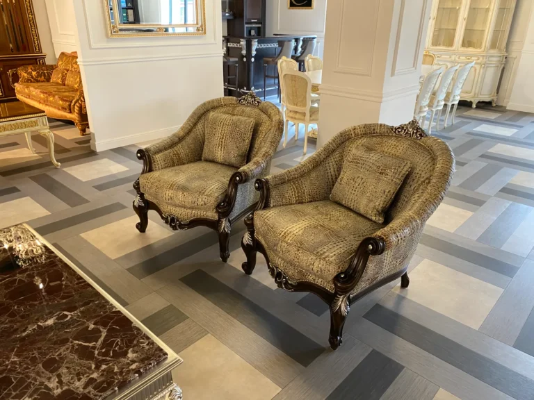 Luxusní křeslo GUICCIARDINI od Angelo Cappellini je mistrovským dílem italského klasického nábytku. Ručně vyřezávaný rám z masivního dřeva a exkluzivní čalounění vytvářejí harmonii komfortu a prestiže. Perfektní doplněk klasických i eklektických interiérů, kde hraje hlavní roli elegance a detail.